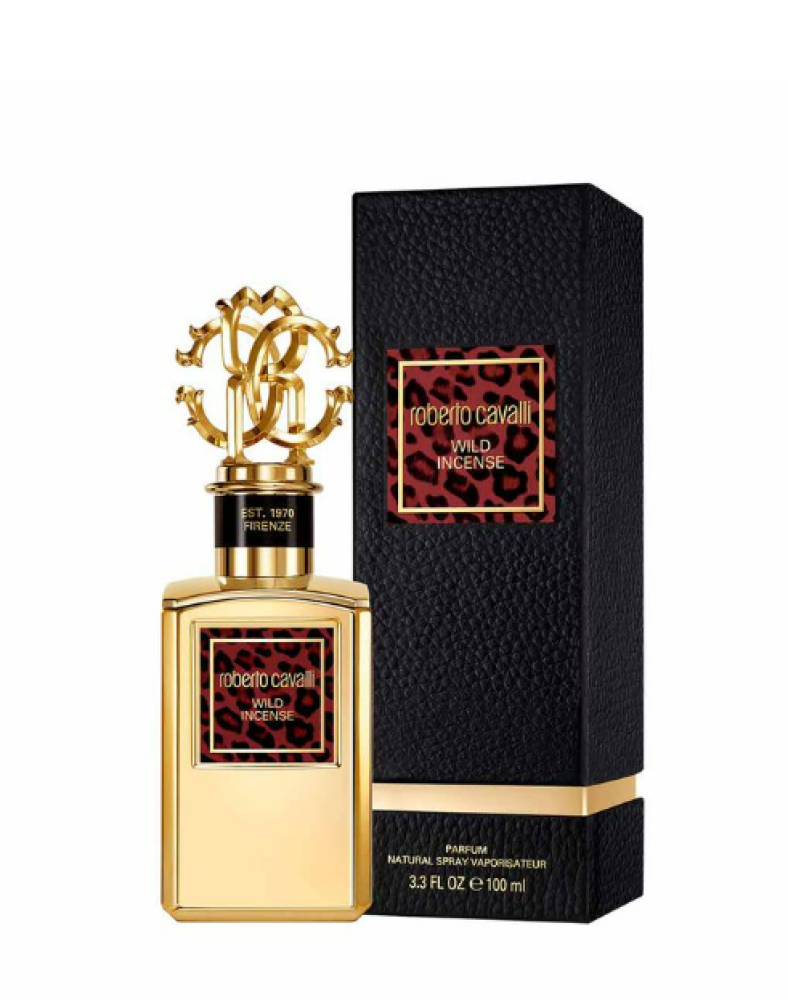 يتم تقديم عطر وايلد اينسينس في زجاجة مميزة مصنوعة من الزجاج الثقيل والذهبي وتوجها حرف واحد فقط من روبرتو كافالي، وهو ختم الأناقة والجودة.