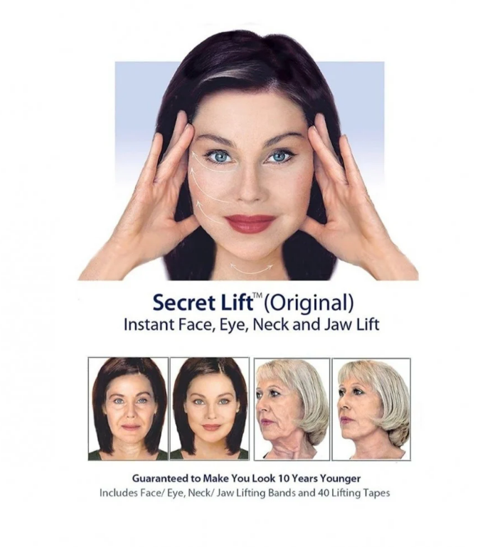 اللصقات الاصليه الأمريكية المنتج عباره عن لصقات رفع للوجه و الرقبه تقدري معاها ترفعي من جهه الحواجب تعملي سحبه للعين و الحواجب او ترفعي من جهه الخدود لتحديدها او تشدي فيها رقبتك و منطقه الفك تسوي تكساس بثواني والخيوط تتخبى داخل الشعرو يعتبر اختراع بطل افضل من الابر و ومن زمان كانو يستخدموه بكثرة نجوم هوليود البكج فيه 40 لصقة و4 خيوط.