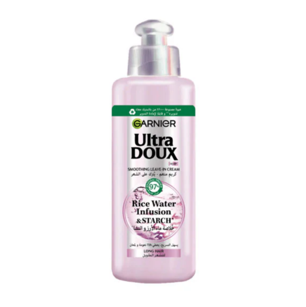 كريم ليف إن ألترا دو من جارنييه مصمم خصيصًا لتغذية الشعر وترطيبه. يحتوي على خلاصة ماء الأرز والنشا، مما يساعد على تعزيز صحة الشعر ويجعله أكثر نعومة ولمعانًا.