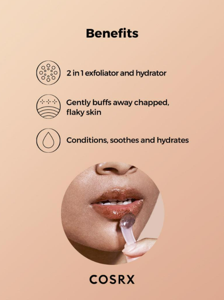 - مقشر الشفاه 2 في 1 يعمل كمقشر ومرطب، مما يساعد شفتيك على الحفاظ على حالتها الصحية الطبيعية.